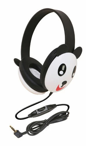 The playful panda motif Listening First headphone is specifically built for young students with safety as its first concern. Rugged ABS plastic earcups withstand daily use with adjustable volume control for individual preferences. This stereo headphone is ideal for story-time, library and computer uses.